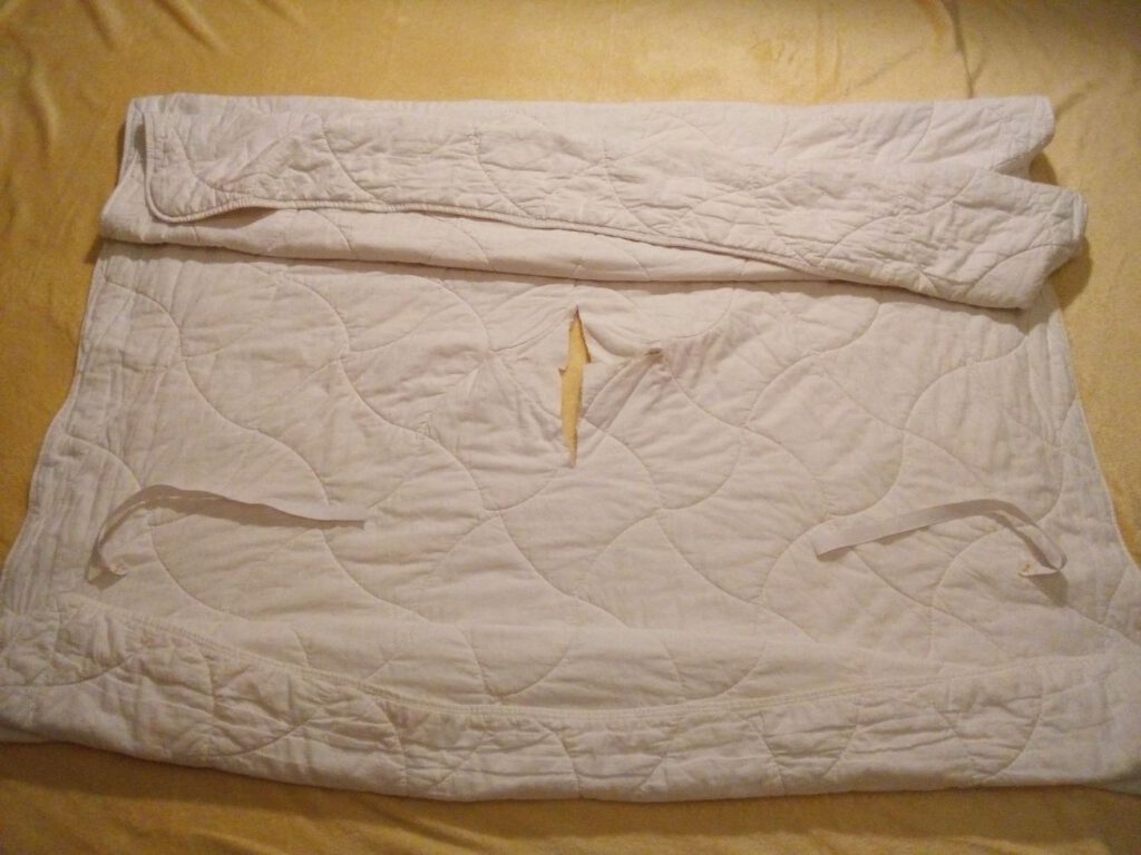 - falten Sie die Decke zusammen (oben und unten) – eine Seite sollte etwas länger sein – das wird dann der Rücken