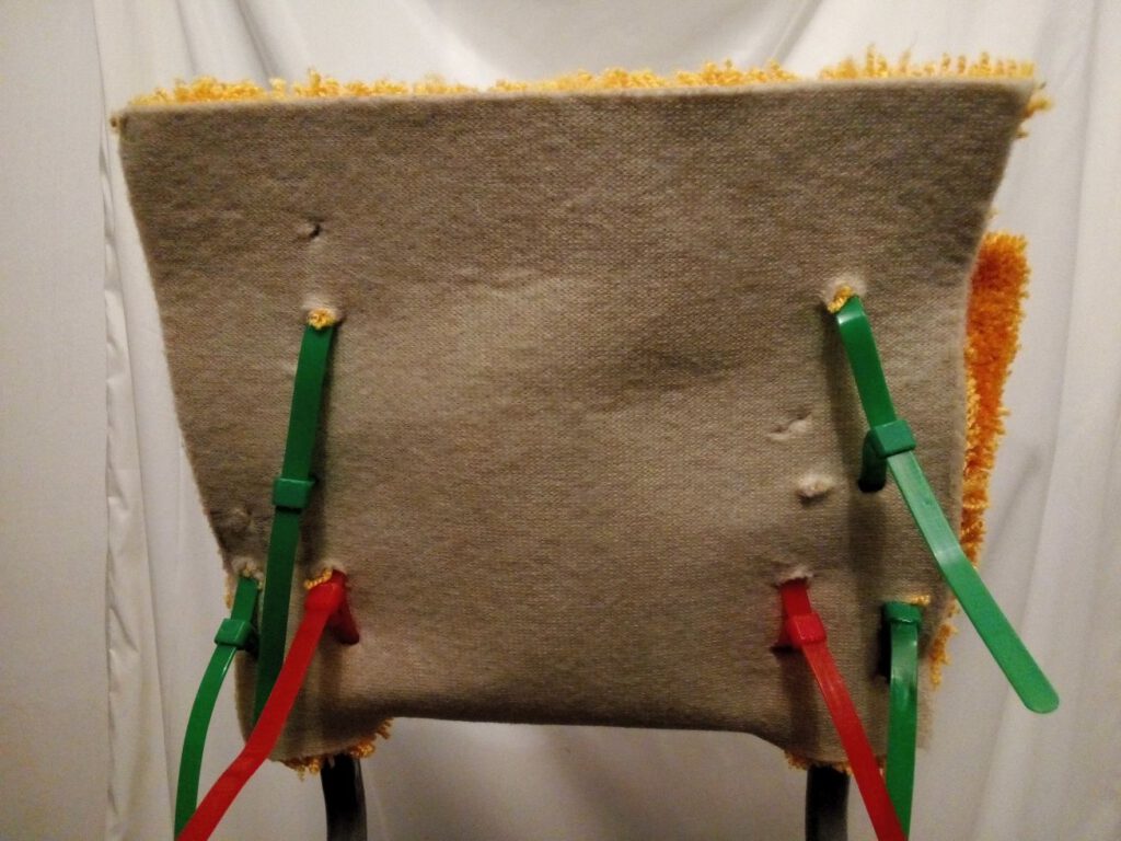 Griff des Hackenporsches mit warmen, pflüschigem Teppich einpacken – mit Schnellverbinder passend „zusammennähen“.