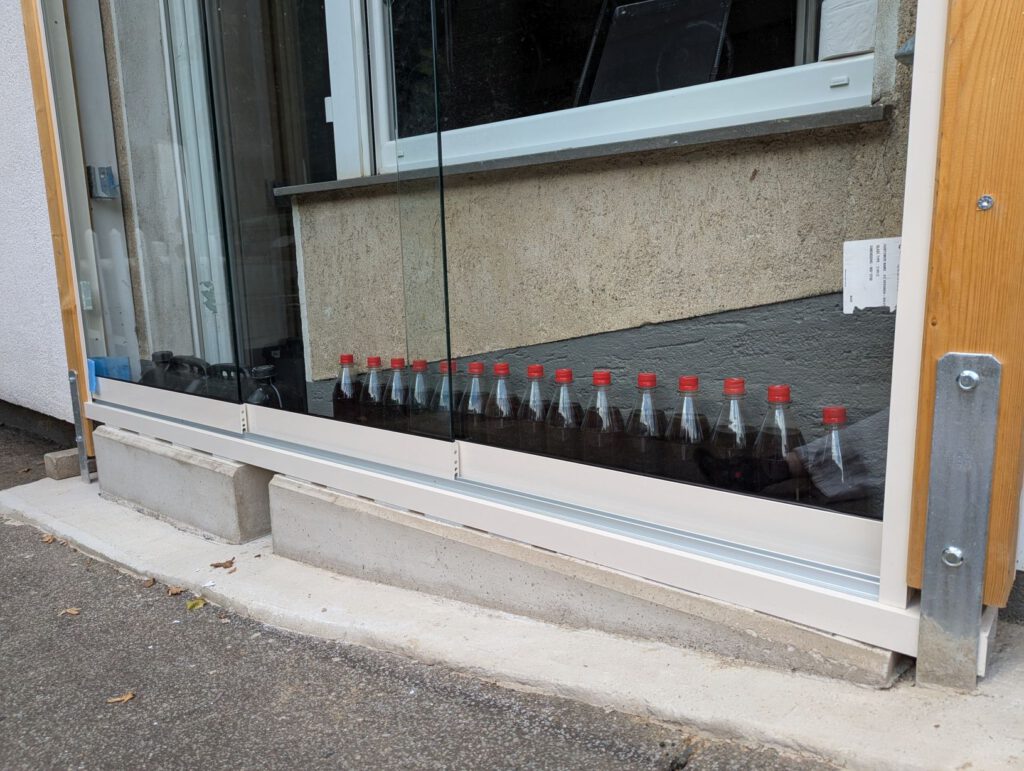 (nicht zu dicht am Glas, sonst kommt es zu Materialspannungen im Glas und es könnte kaputt gehen)